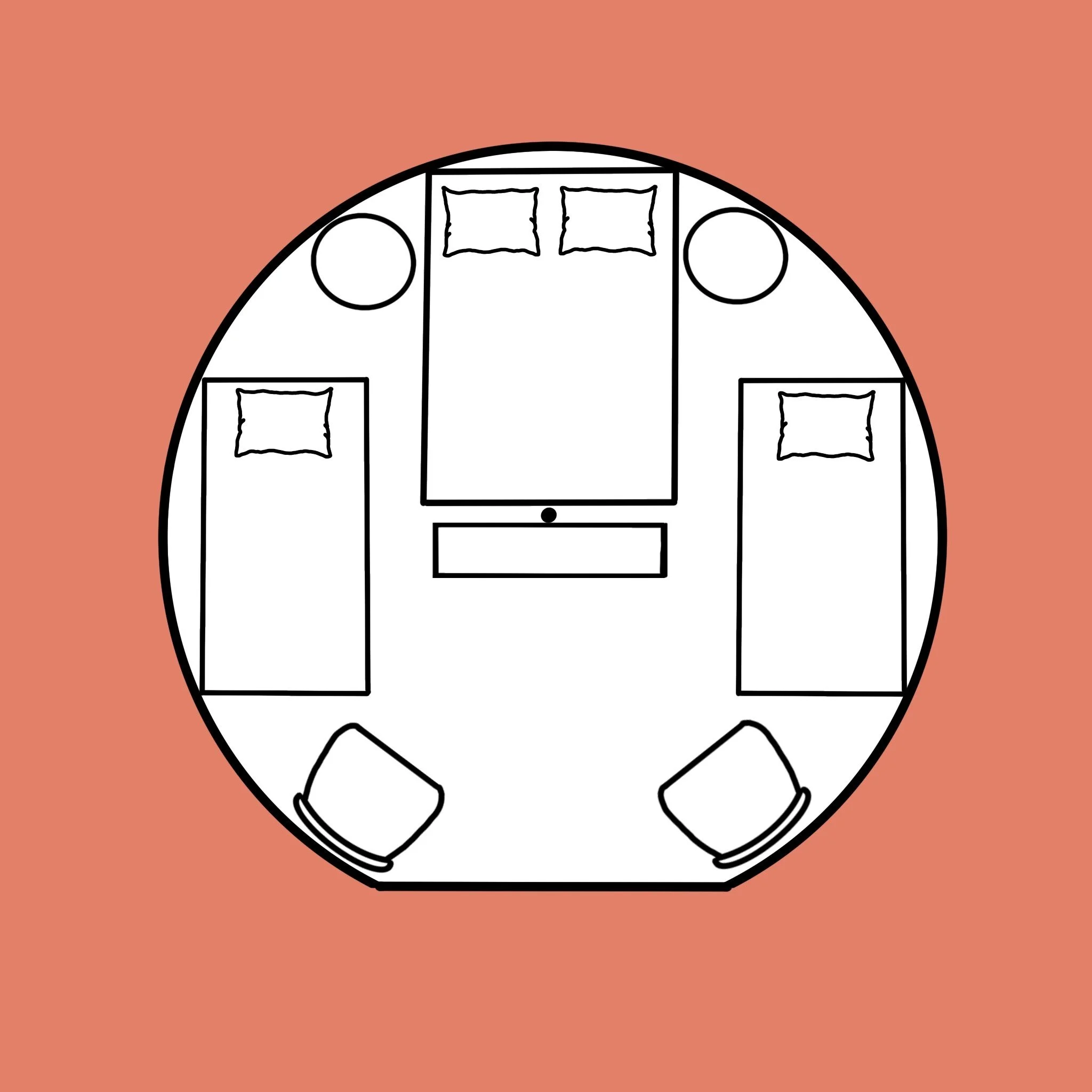 Two comfortable chairs & a custom bench